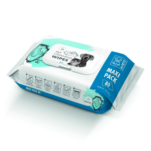 מגבונים לניקוי הפרווה לכלבים ולחתולים 80 יחידות – מגבונים אנטיבקטריאליים, ללא אלכוהול וכימיקלים עם רכיבים טבעיים. מעניקים לפרווה מראה נקי ורך. היפואלרגניים, מתאימים לשימוש יומיומי.