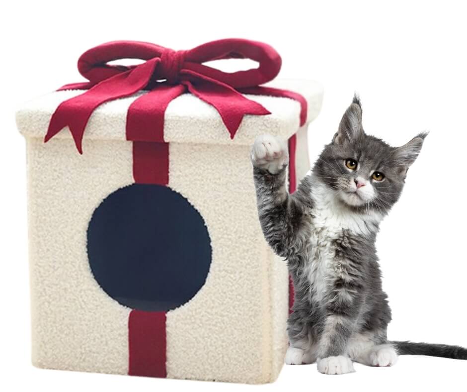 המתנה המושלמת לנובי גוד ולכריסמס, מגרדת בצורת מתנה בגודל 35X34X35 כי גם לחתול מגיעה מתנה!