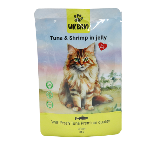 פאוץ' לחתולים על בסיס דג אמיתי. מזון משלים לחתולים בגיל ארבעה חודשים ומעלה. רכיבים: טונה (40%), שרימפס (2%), שמן דגים, טאורין, חומצת לימון, ויטמין E, מסטיק קסנטן.