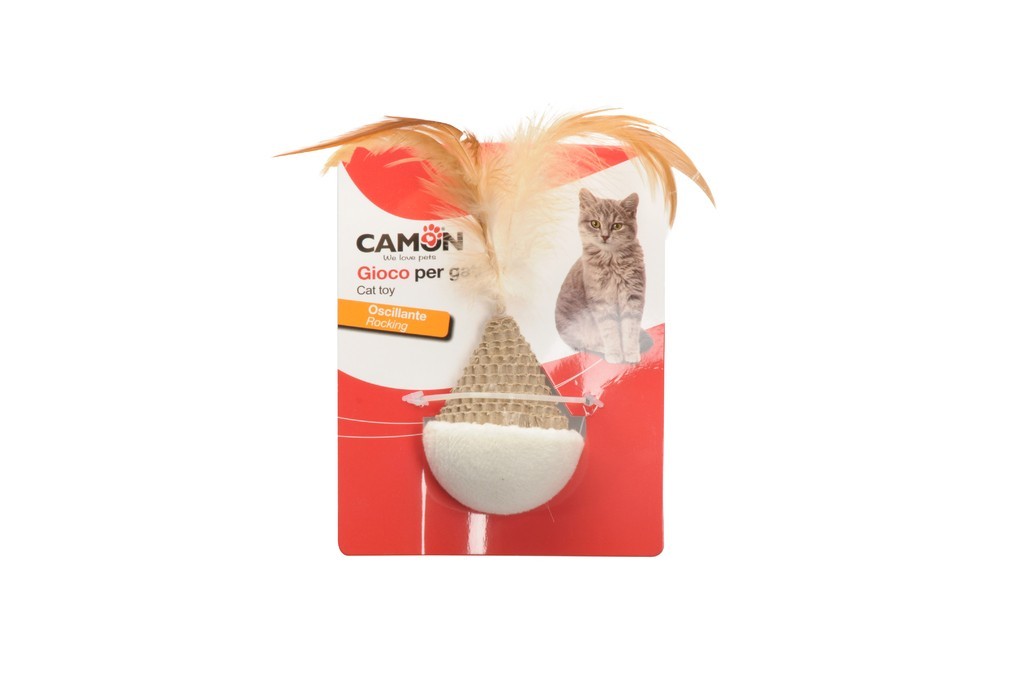 משחק נחום תקום עם נוצה לחתול מבית Camon – צעצוע אינטראקטיבי ומהנה בצורת חצי כדור מתנדנד עם נוצות, המעודד את החתול לרדוף ולשחק. עשוי פוליאסטר ונייר, בגודל 12 ס"מ, מספק גירוי פיזי ומנטלי לחתול שלך.