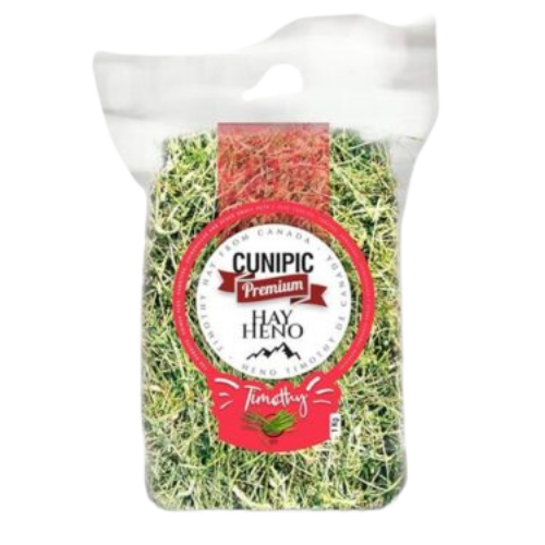 חציר טימותי מבית CUNIPIC בעל סיבים תזונתיים, חלבון וסידן נמוכים, מתאים לשחיקת שיניים ולתמיכה בעיכול תקין. זה החציר המאוזן והבטוח ביותר לשימוש יומיומי. מתאים לארנבים ולשרקנים בוגרים.