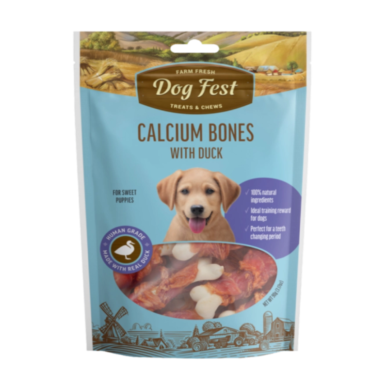 Dog Fest puppy – חטיף עצמות קלציום עטופות ברווז לגור