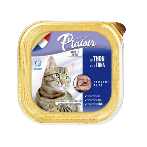 מעדן פטה לחתולים בטעם טונה. רכיבים: בשר ומוצרים מהחי (50%), דגים ומוצרים מדג (כולל טונה 4%), חומרים מינרליים, סוכרים; מועשר בוויטמינים ותוספים תזונתיים (ויטמין?E, תיאורין, ויטמין?C, ויטמין?B1, ביוטין, נחושת, מנגן, אבץ, מתיונין, יוד)