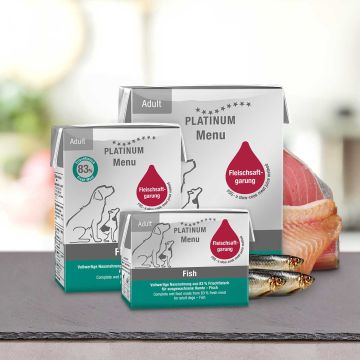 מזון מלא רטוב לכלבים בוגרים בטעם דגים, המוכן בטכניקת בישול מיוחדת לבשר טרי, המבוססת על בישול בוואקום בטמפרטורה נמוכה תוך שימוש במיצי הבשר בלבד. שיטה זו, בהשראת טכניקות של שפים מובילים, יוצרת מזון טעים יותר, בריא ומזין המסייע לבניית שרירים וקל לעיכול. המזון רך ללעיסה הודות למיצי הבשר, מפחית את הסיכון לסיבוב קיבה כי אינו מתנפח בקיבה. הרכב: 40% סרדינים טריים, 25% טונה טרייה, 18% פורל טרי, שמן חמניות, תפוח אדמה מיובש, ירקות מיובשים (ברוקולי, גזר, פטרוזיליה), שמן זית.