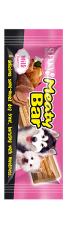 חטיף לכלב בטעם חלב. רכיבים: עוף, חיטה, פולי סויה, חמאת חלב, גליצרין, סוכרוז, פוטסיום סורבה (כחומר משמר) וחומרי טעם וריח.